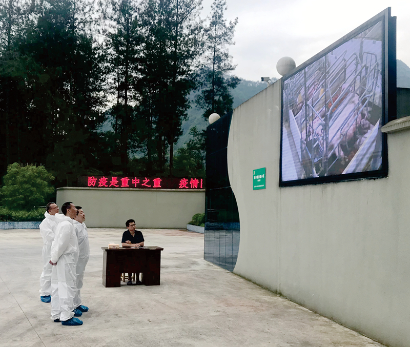 圖為公司總經(jīng)理羅云陪同農(nóng)行重慶市分行信管部副總袁毅、黔江分行行長(zhǎng)陳印在興隆灣種豬基地調(diào)研