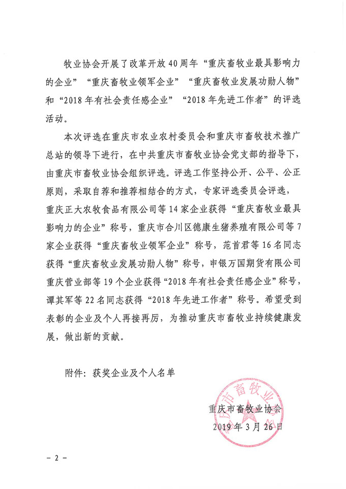69畜牧總經(jīng)理羅云獲得“重慶畜牧業(yè)發(fā)展功勛人物”稱號