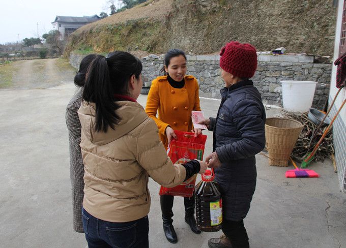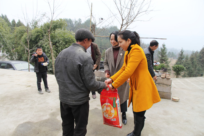 重慶69自落戶沙壩鄉(xiāng)脈東居委以來,新春給當(dāng)?shù)靥乩舭菽赀@個(gè)傳統(tǒng)已堅(jiān)持了10年。體諒到這些群眾都年紀(jì)偏大,行動不便,我們今年更是繞著山路將一份份愛心送到每個(gè)特困戶家里。