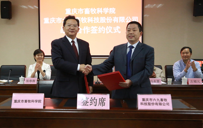 2016年10月28日,在重慶市畜牧科學(xué)院會(huì)議室,重慶市畜牧科學(xué)院院長(zhǎng)劉作華和重慶市六九畜牧科技股份有公司總經(jīng)理羅云共同簽訂了《共建重慶生豬產(chǎn)業(yè)技術(shù)研究院有限公司戰(zhàn)略合作協(xié)議》。
