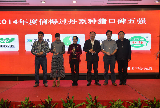 2014年度信得過丹系種豬企業(yè)五強(qiáng)(左3為重慶69代表)