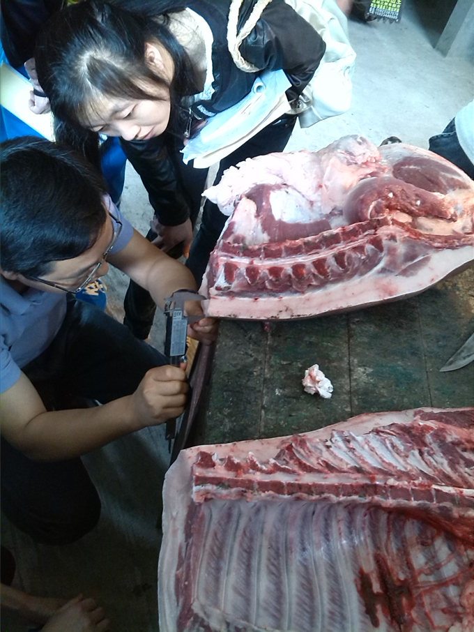 (圖2:69場技術(shù)員認(rèn)真學(xué)習(xí)背膘厚對比檢測操作)