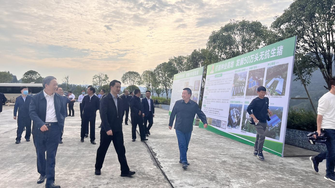 10月14日下午,重慶市副市長鄭向東、市水利局局長張學鋒,市農業(yè)農村委主任路偉,市交通局副局長李關壽,市鄉(xiāng)村振興局副局長王光榮一行,在黔江區(qū)委書記徐江、區(qū)委副書記、區(qū)長周恩海的陪同下蒞臨公司興隆灣種豬基地調研指導工作。