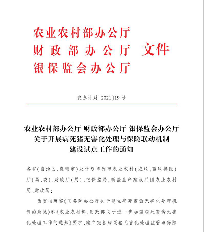 保險(xiǎn)惠農(nóng)政策雙贏的長(zhǎng)效機(jī)制,農(nóng)業(yè)農(nóng)村部、財(cái)政部、銀保監(jiān)會(huì)決定組織開展病死豬無(wú)害化處理